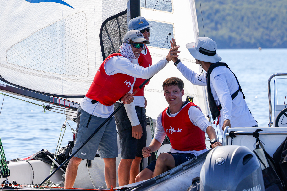 « Le vent n’était vraiment pas stable aujourd’hui. Cela a plutôt joué en notre faveur sur les deux premières courses. Heureusement, la dernière course a été annulée car nous n’étions pas bien placés. Nous sommes très contents de ce championnat de France Espoirs, mais il va falloir attendre la dernière journée car nous jouons une place sur le podium. »