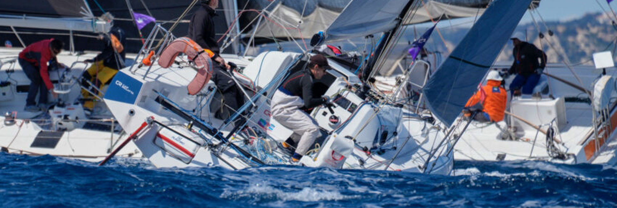 Petite attente rythmée par la houle marseillaise en rade nord en ouverture de cette ultime journée, avant qu’un flux de 12 nœuds attendu comme le Messie fasse son entrée en scène. Sous un soleil radieux, les IRC 0-1 ont ouvert le bal sur un parcours construit, suivi des autres classes. Après une heure trente d’une très belle course, le comité envoyait un parcours côtier de 16 milles pour l’ensemble de la flotte, habilement établi entre le port autonome, les Catalans et une bouée au large.