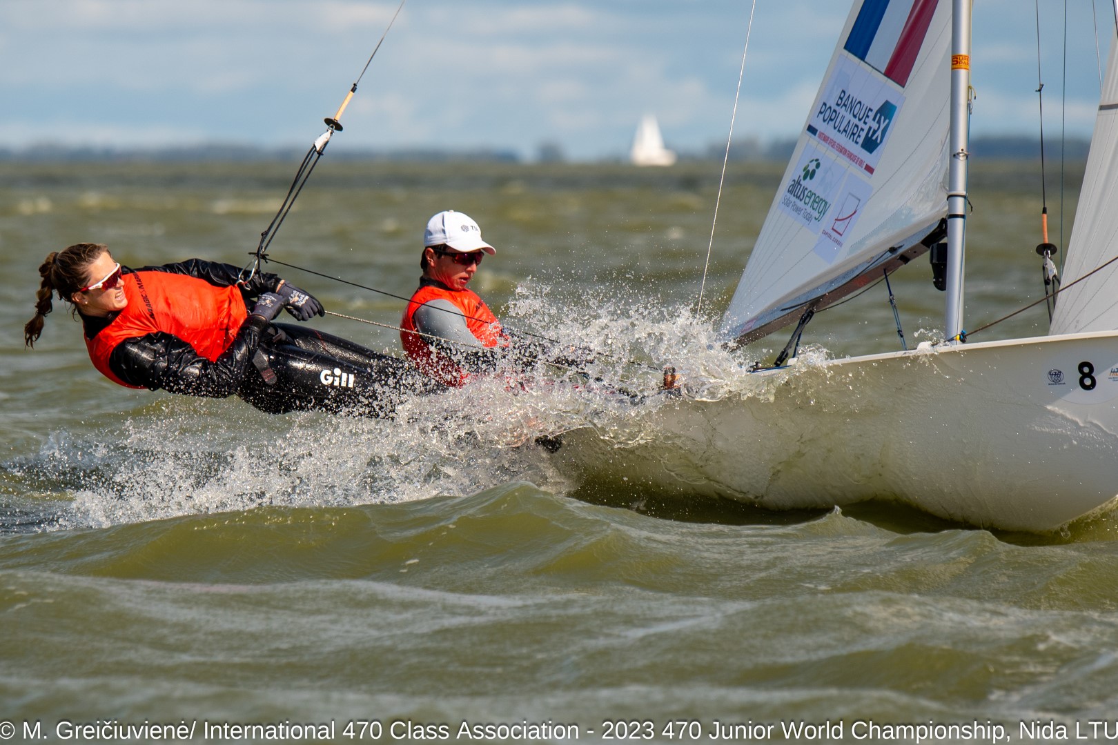Également encadré par le coach Philippe Boudgourd les deux autres équipages Français engagés sur le Championnat du Monde Jeunes ont aussi réalisé des belles performances. Déjà médaillés (en argent) au Championnat d’Europe U24 le mois dernier, Manon Pennaneac’h et Pierre Williot sont remontés sur « la boite » avec une belle médaille de bronze autour du cou ! Pour sa première compétition en 470 et pour son retour à la barre après son titre de Championne du Monde d’Optimist en 2021, Lomane Valade (SNO Nantes) était associé à Julien Bunel (Mare e Vela) et le nouveau duo a impressionné, terminant à la 5e place finale au classement U21 avec notamment 2 places de 2e.