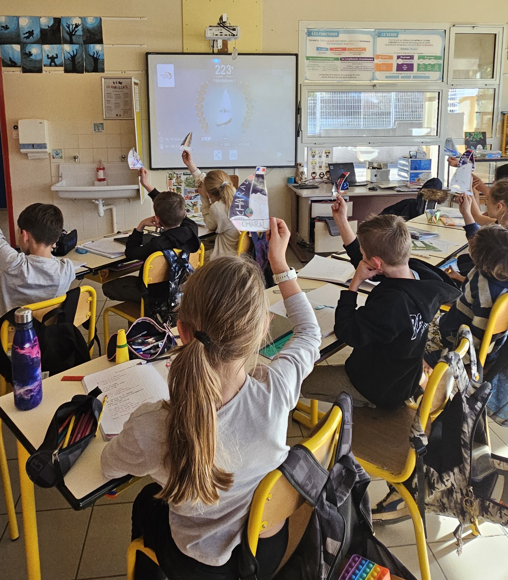 Dans la catégorie Primaires USEP, le suspense a été total jusqu’aux derniers instants. Les CM1-CM2 de l’École des Grives à Tordères (66), avec leur bateau "Waterplouf?", ont arraché la victoire d’une courte tête face aux CE2-CM1 de l’École Henri Clément à Saint-Rémy (71) et leur voilier "Albatros". Seulement 32 secondes séparaient les deux équipages après 76 jours de navigation ! « C’est génial pour les élèves mais nous sommes arrivés de nuit et nous n’avons pas pu vivre ça en direct en classe », regrettait simplement Guillaume Balansa, l’enseignant occitan. « La mer, les élèves ne connaissent pas trop. On ne la voit que pour aller à la plage ! Le monde de la voile c'était un peu l’inconnu, donc il a fallu étudier tout ça. Il n’y en avait quasiment pas un qui connaissant le Vendée Globe avant de lancer l’opération et c'est vrai qu'ils se sont enthousiasmés pour la course et les histoires des skippers. Parfois ils me racontaient ce qu'ils avaient vu à la maison, de leur côté ».
