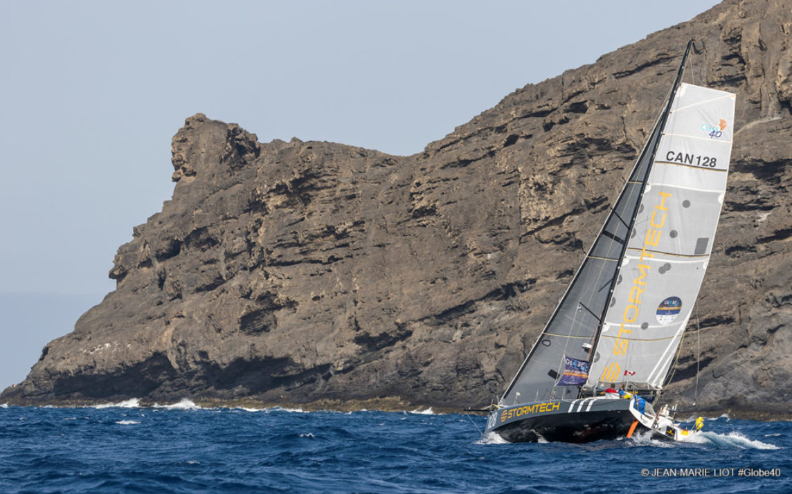 Le Départ de la 2ème étape de la GLOBE40 a été donné hier en baie de Mindelo sur l’ile de Sao Vincente au Cap Vert. Dans des conditions parfaites de vent et de soleil. Les Class40 ont remonté le venteux et magnifique canal de Sao Vincente pour contourner l’ile par le Nord.