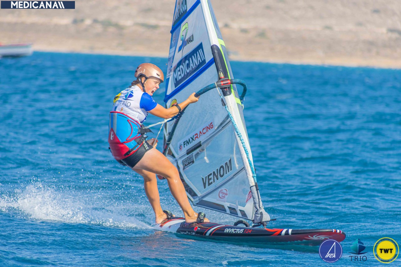 Réaction de Justine Lemeteyer, Championne du Monde Jeunes IFCA Slalom 2022 : « Nous sommes arrivés 3 jours avant la compétition, à Alacati, avec le groupe France, pour nous préparer sur le plan d’eau. Il n’y a pas eu de vent au début et dès le premier jour de course j’ai eu de la casse sur mon matériel, donc je n’ai pas démarré la compétition de la meilleure des manières. Mais le lendemain, dans de l’air je me suis bien rattrapée avec un 4 sur 5. Après on a eu des journées de vent plus léger et plus changeant mais j’ai bien réussi à rester devant. La vitesse était là, mais dans les conditions qu’on avait, avec du vent varié et de l’eau plate on est beaucoup à en avoir, donc il a fallu faire les différences aux bouées et c’est ce que je suis arrivée à faire cette semaine, avec des bons départs également. On a eu de la chance d’avoir un super groupe, avec une aide précieuse du coach, Julien Magurno et une super ambiance. Les 10 jours passés ensemble sont passés trop vite ! C’était vraiment sympa de partager ça avec les autres Français, avec une belle entraide et un vrai esprit d’équipe. »