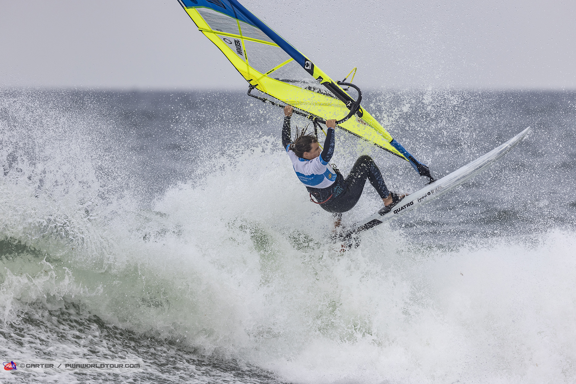 C'est l'exécution dans un timing donné de sauts et de surfs dans les vagues avec notation. Le format est en élimination directe.
